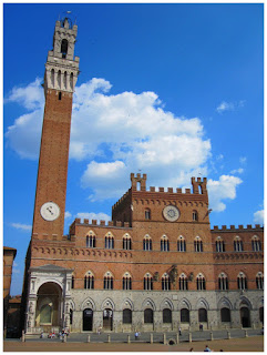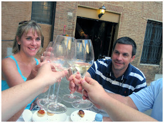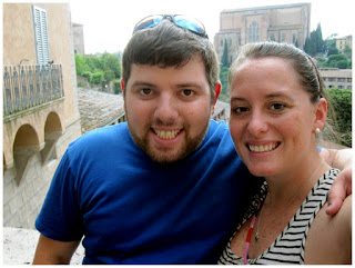 We woke up early, saying goodbye to Rome until June 13th, and hopped on a train to Siena. Cara's parents and aunt and uncle were waiting for us at the train station and the 6 of crammed into their tiny car. We walked around Siena, enjoying the city. Especially beautiful was the Piazza del Campo. It was a large plaza with a clock tower and shops surrounding it. From there, Jamie, Cara's dad and uncle went to see the Cathedral of Siena while Cara, her mom and aunt decided to head to a little cafĂ©, Cava De’ Noveschi, to have a glass of wine. Our one glass of wine turned into a bottle and our waiter brought out 6 different plates of appetizers - for free!